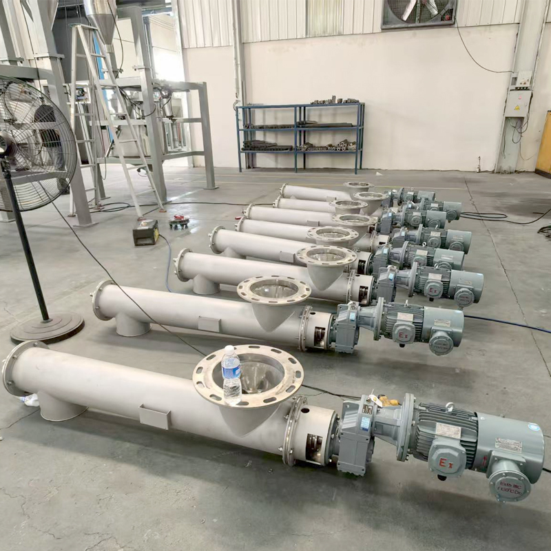 1Conveyor sekrup mengangkut bahan campuran dari mixer pita ke konveyor sekrup horizontal