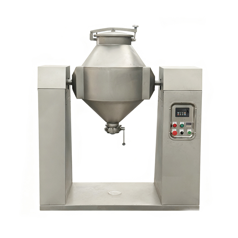 The working principle of the double-cone mixer is based on the mechanisms of gravity diffusion and convection mixing: When the driving device drives the double-cone cylinder to rotate around the horizontal axis, the materials in the cylinder are continuously sliding down along the cone walls under the influence of gravity and generate complex axial and radial movements; as the cylinder continues to rotate, the materials repeatedly separate, converge and exchange positions between the two cones, forming a strong three-dimensional立体 circulation flow. This continuous shearing, diffusion and convection action quickly eliminates the concentration differences between the components, thereby achieving highly uniform mixing of the materials in a short period of time.